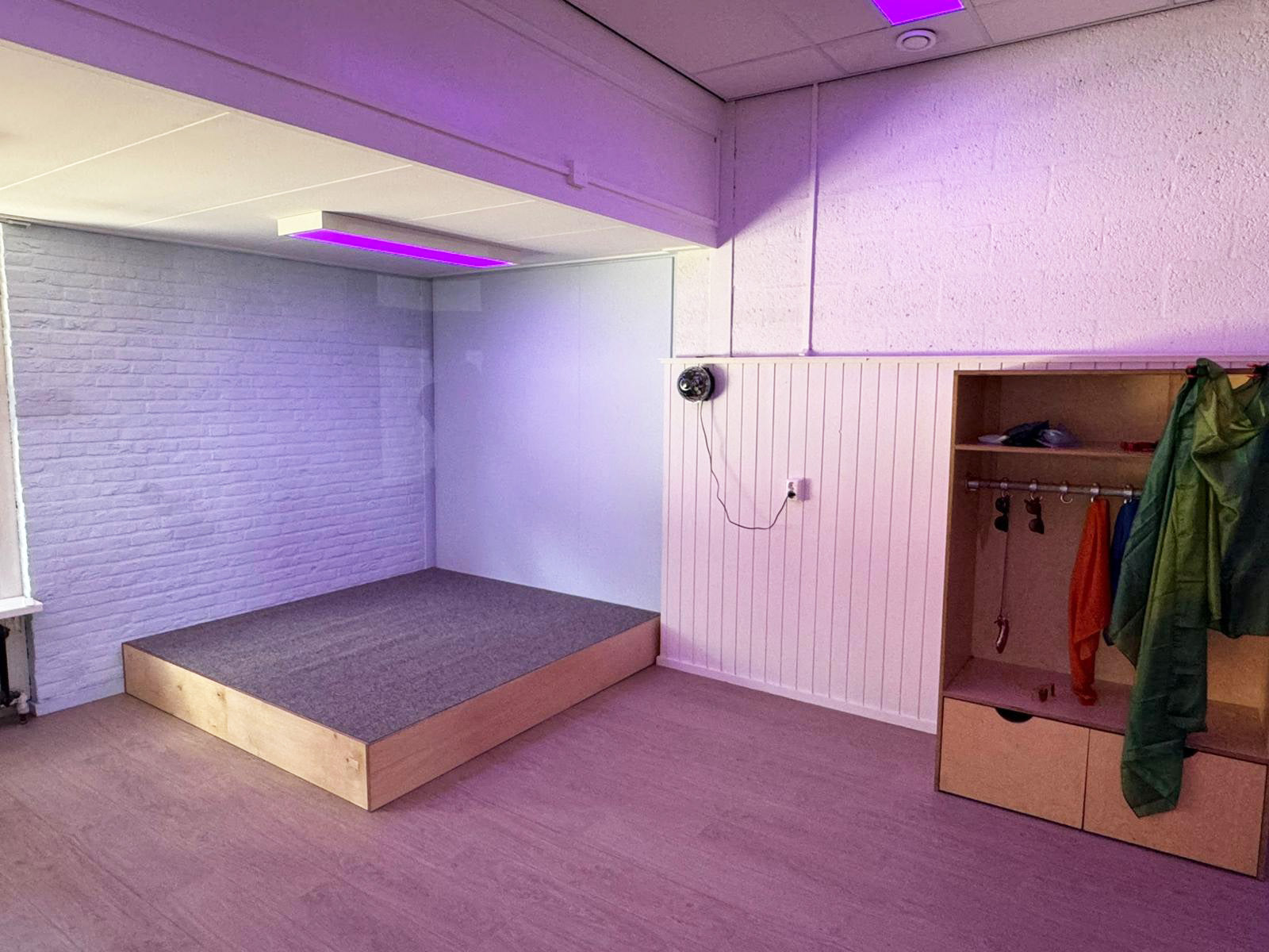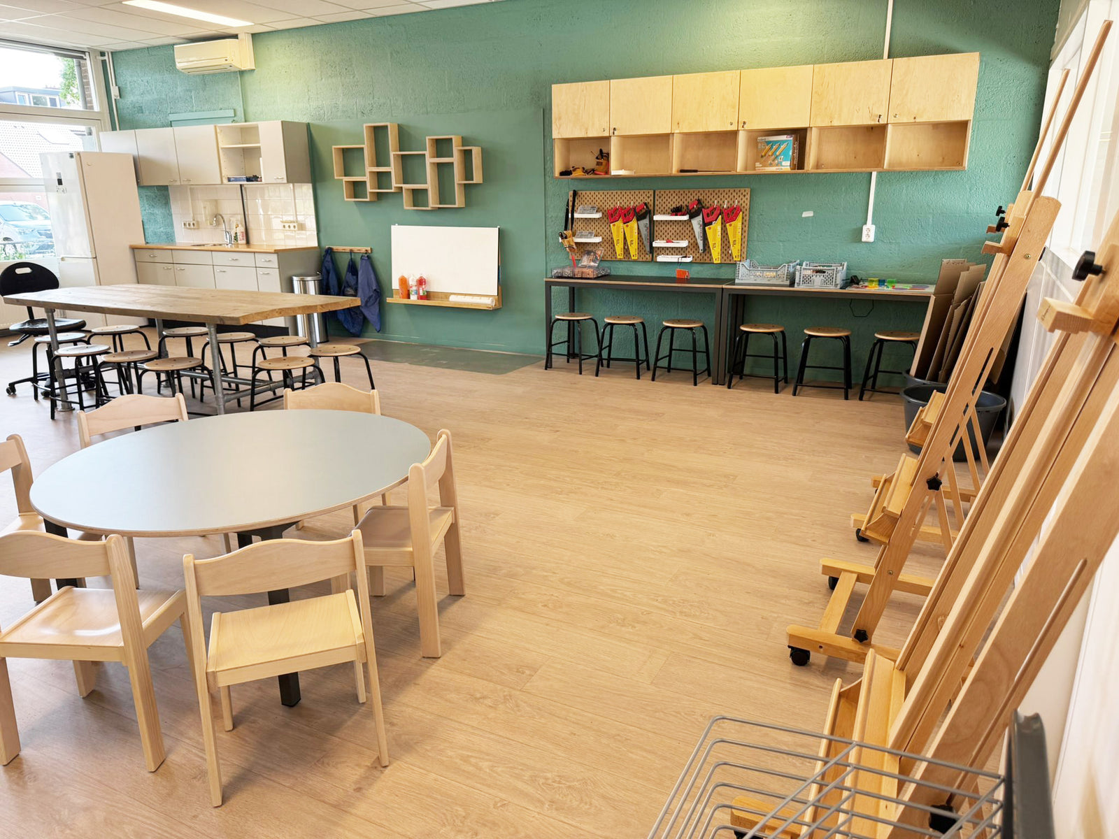 Het gebouw kreeg nieuwe vloeren en fris schilderwerk. Er werd gewerkt met bestaande meubels uit de opslag, dit werd aangevuld met gericht moois. En kijk nou: van een atelier en legokamer tot een natuurhoek, theaterhoek met discoballen en een tuthoek met kapperspop: de ruimte is omgetoverd tot een aantrekkelijke, rijke speelomgeving. Tijdens de opening regende het complimenten, leuk hoor.