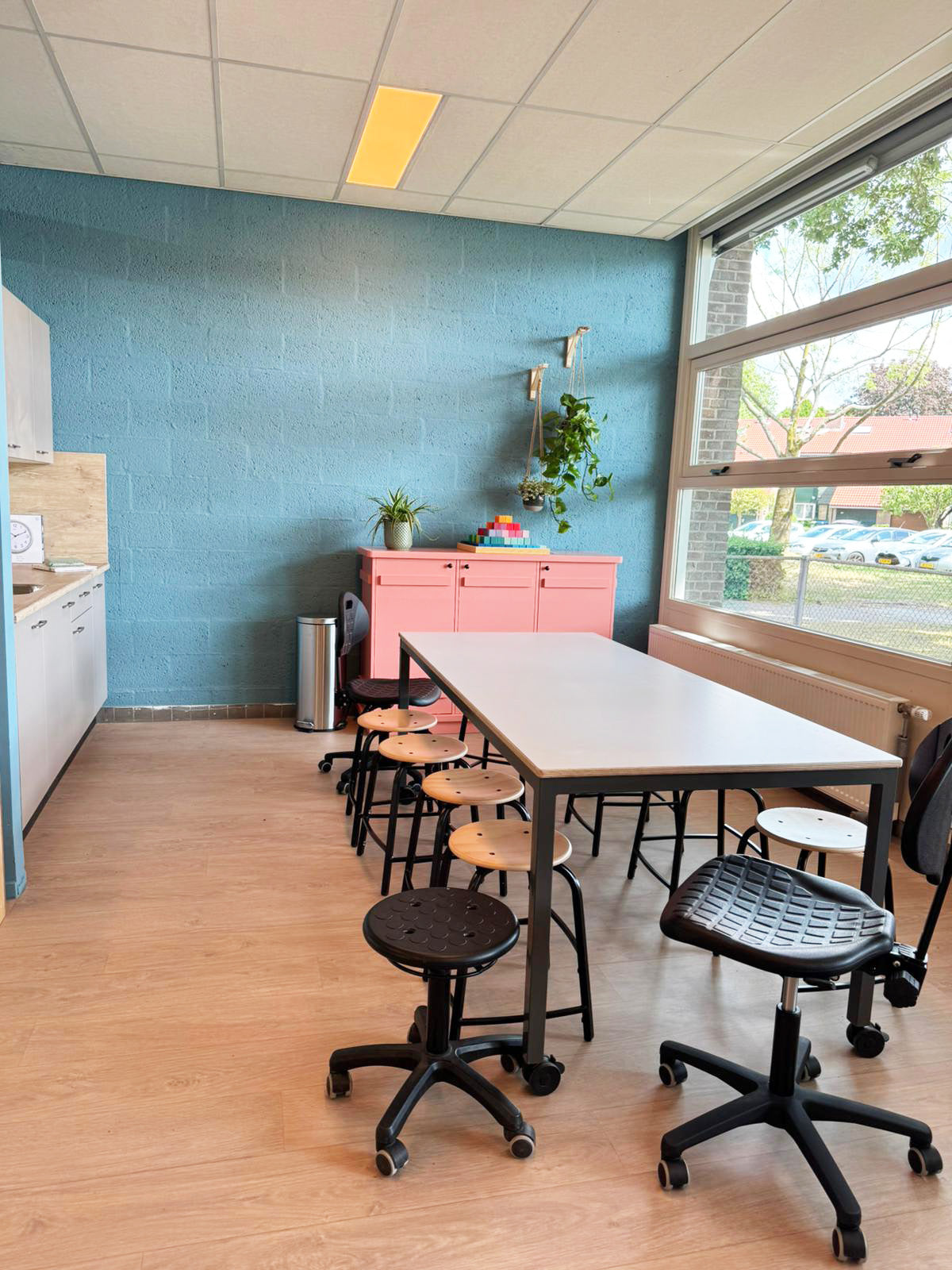 BSO De Spil is onderdeel van kinderopvangorganisatie KION. KION ontwikkelde in samenwerking met onder meer onze Mirjam een paar jaar geleden een nieuw inrichtingsconcept. Hier ontstonden de kaders voor meubels, kleuren en styling. Toch wordt elke locatie anders: de wensen van de pedagogisch medewerkers worden vertaald naar de praktijk. Niet overal hetzelfde, wel herkenbaar.