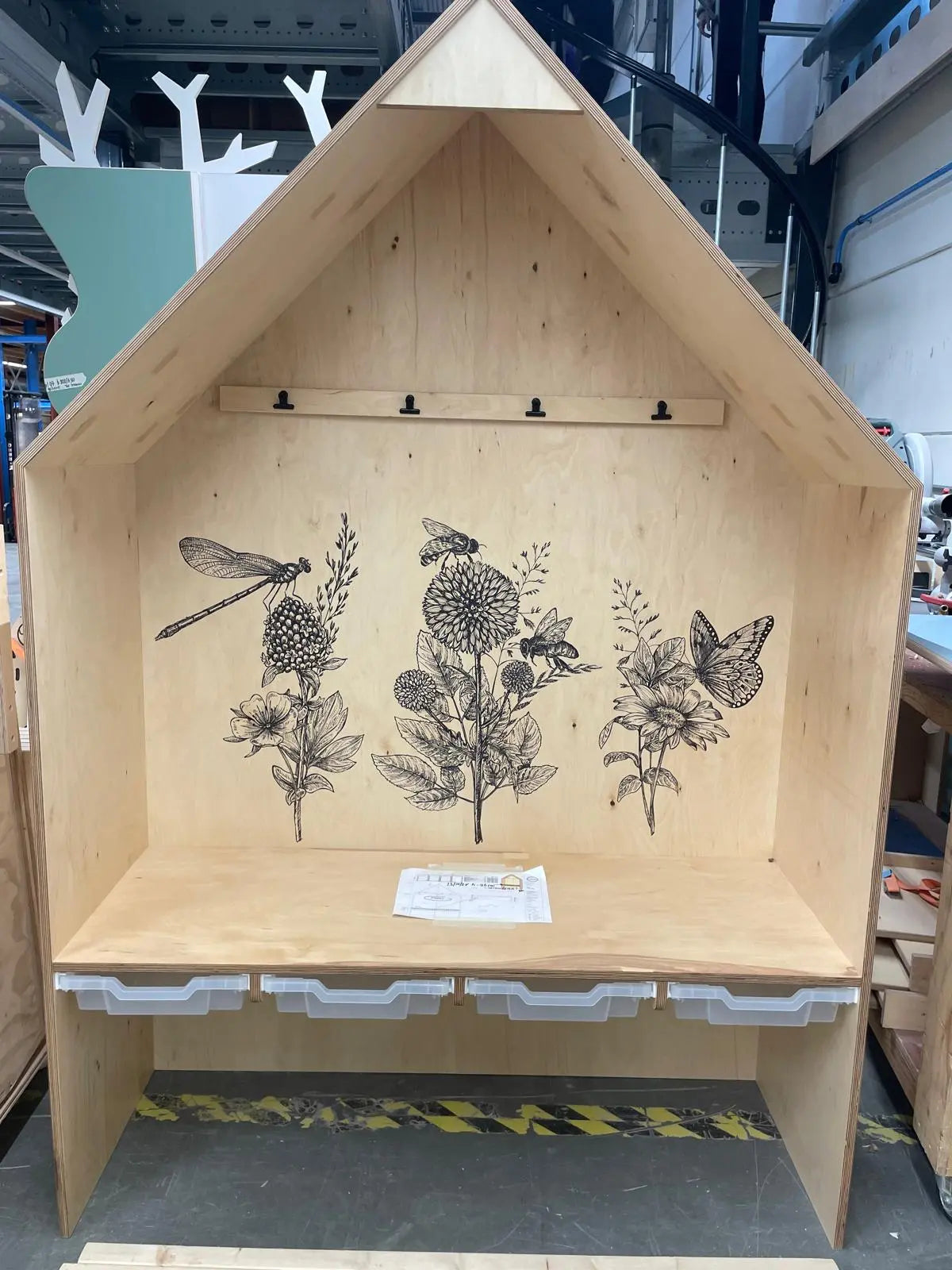Wij kiezen bewust voor het werken met echt hout: dit is ijzersterk en daarom een duurzame keuze. Wij gebruiken graag de hele boom, zo maken wij jouw meubels op een duurzame manier. Je ziet dus tekeningen in echt hout. Lees meer over ons materiaal.