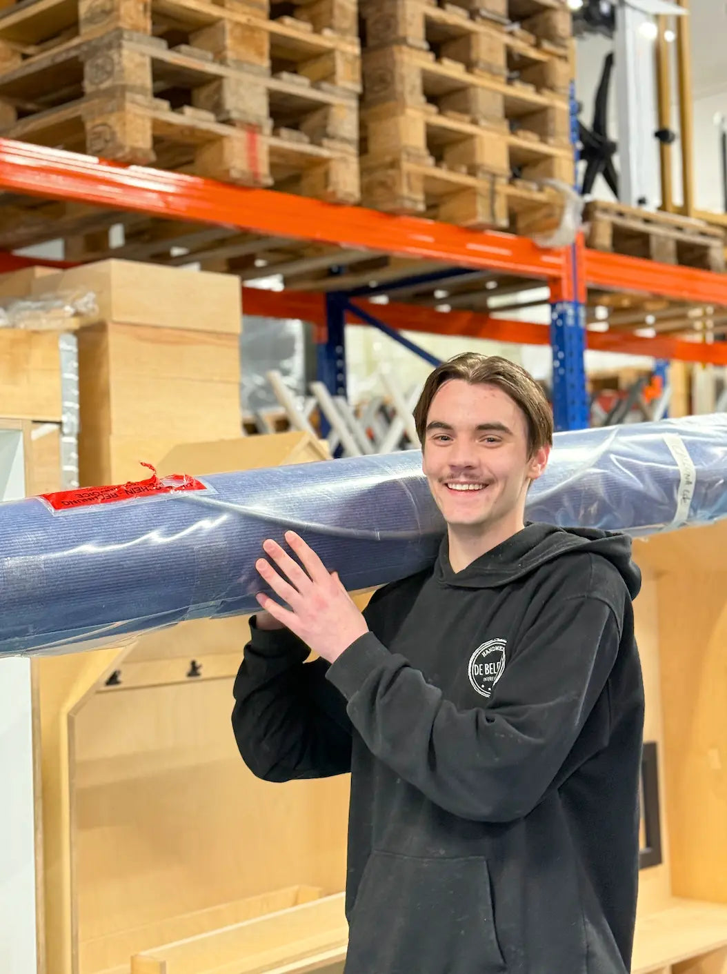 Jelle= actie! Hard werken, lachen, voetballen, huisdierverzorgen, op stap met vrienden, De Beleving een weekje helpen.. Maar wij zijnwel heel gezellig en het werk is afwisselend. Waarom zou je dan niet blijven?Stond hij daar met z’n mond vol tanden. Zie hier onze nieuwe logistiekmedewerker!