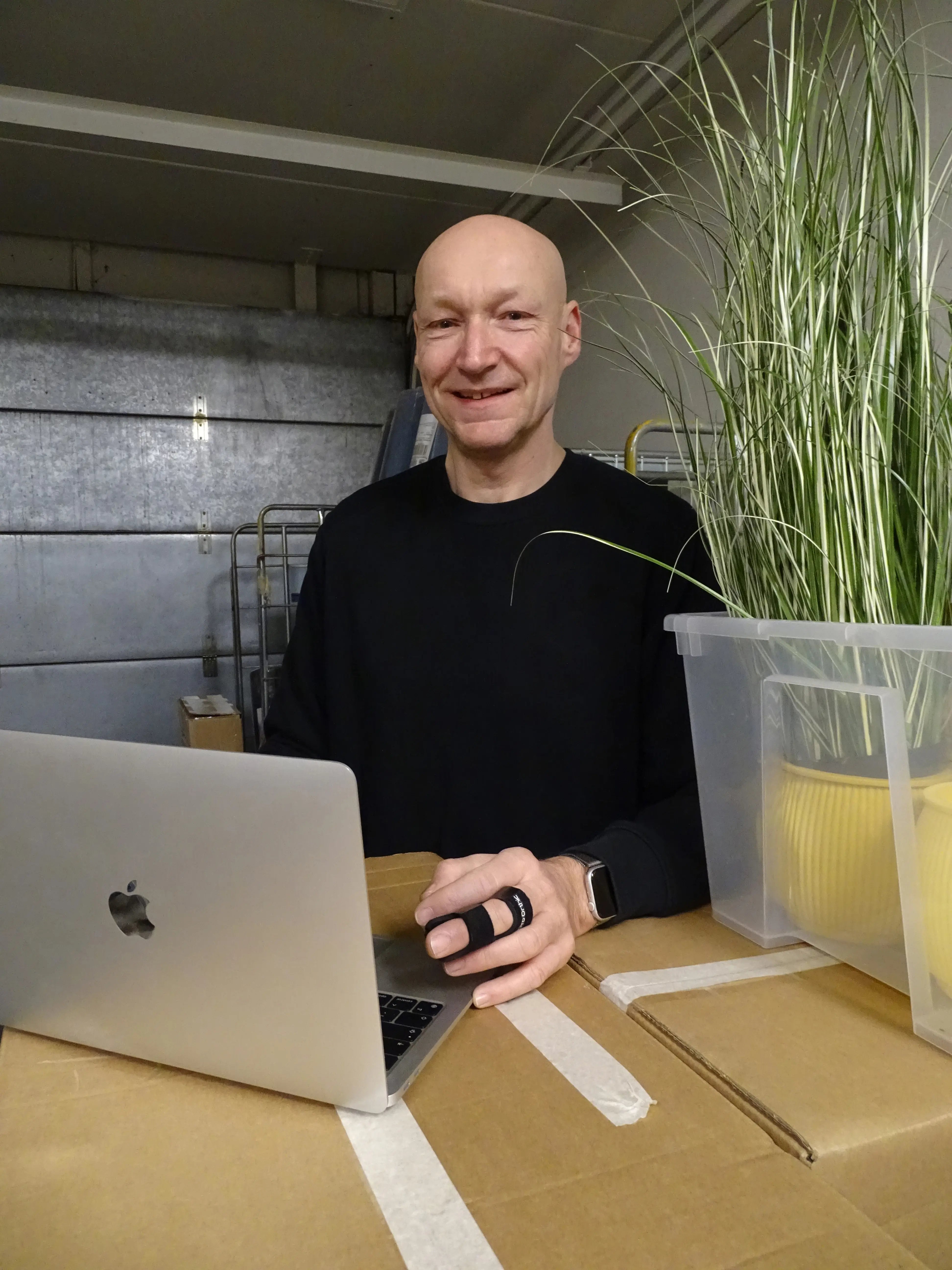 Zo was hij in de werkplaats en zo zat hij achter een bureau. Van lakken, bouwen en op klus stapte Daniel moeiteloos over naar het maken van werktekeningen, CNC-bestanden en inkoop van materiaal. Dat kan hij dus ook. Niet bij te houden die gozer...Go Daniel!