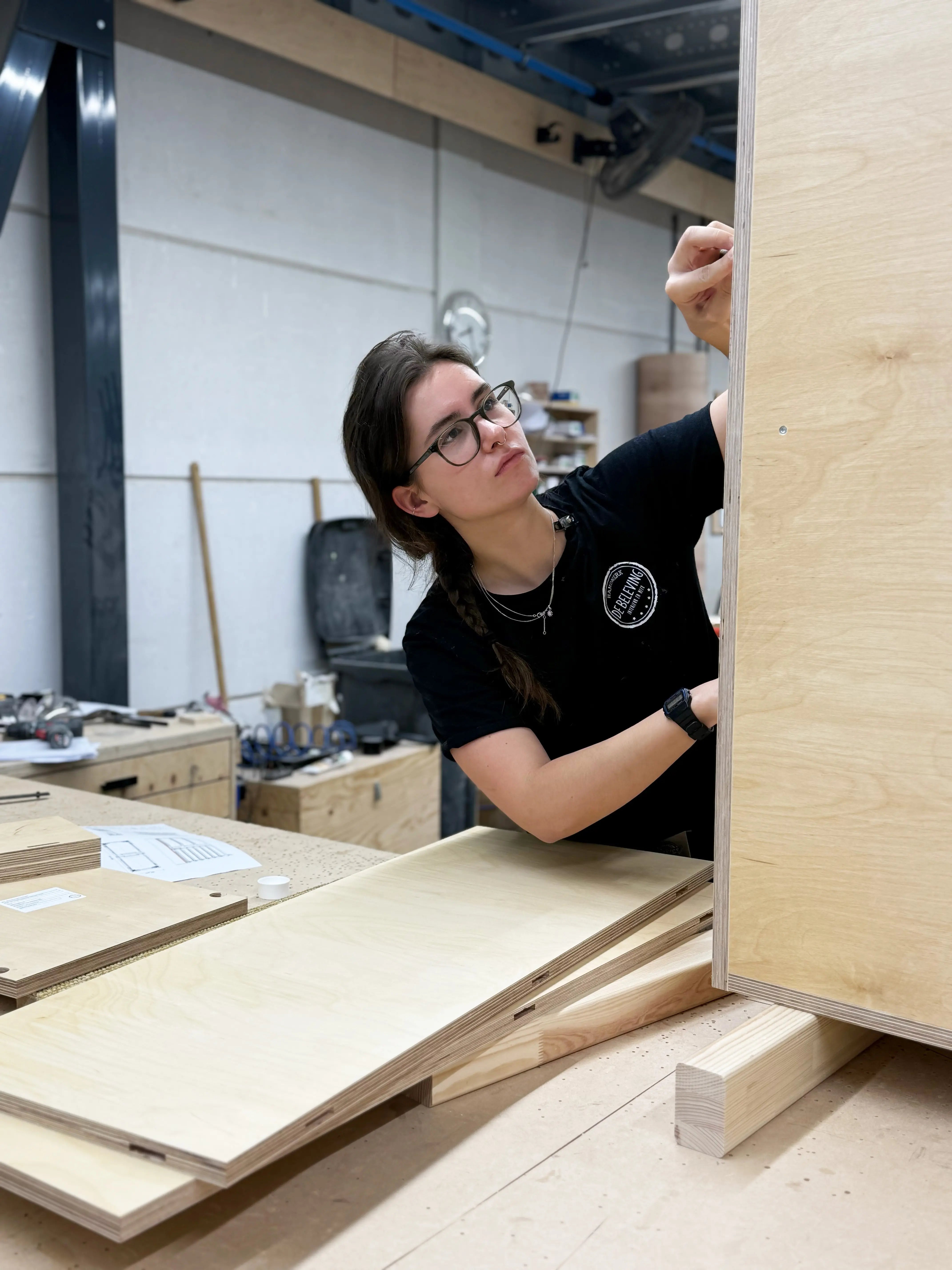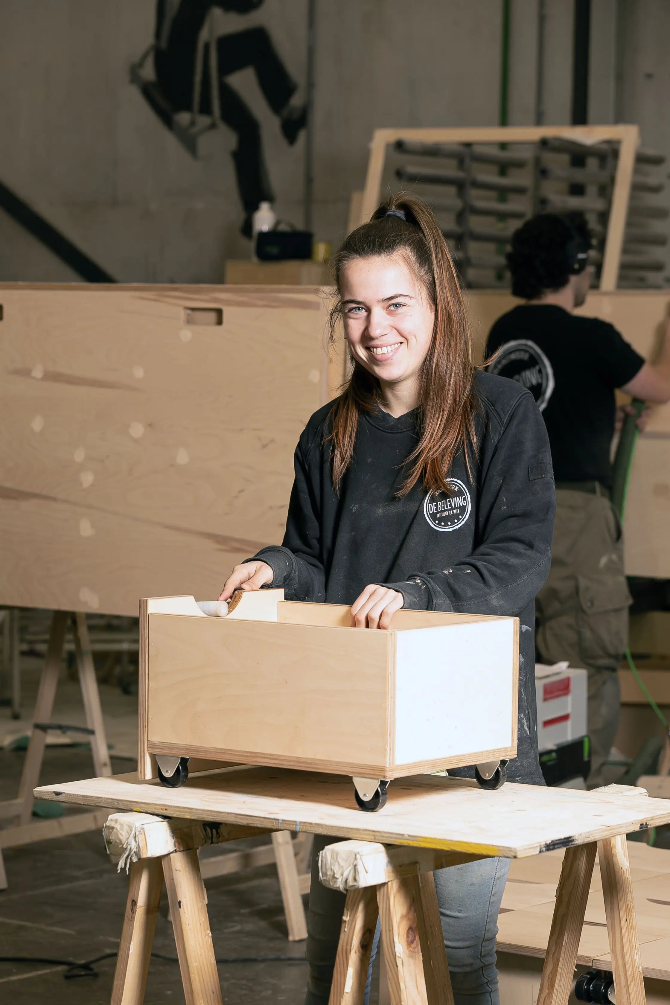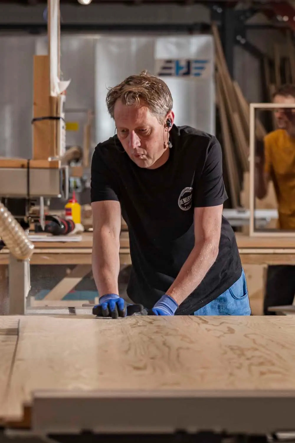 Hardwerkende horecavrouw Sanne ontdekte al timmerend dat zelf meubels maken heel gaaf is. Dus gooit ze het roer om en gaat ze voor de opleiding meubelmaker. Ze zocht een gezellig team: tadaaa! Alleen dat vroeg opstaan… Gelukkig zijn wij ook 's ochtends vroeg heel gezellig. Goedemorgen Sanne!